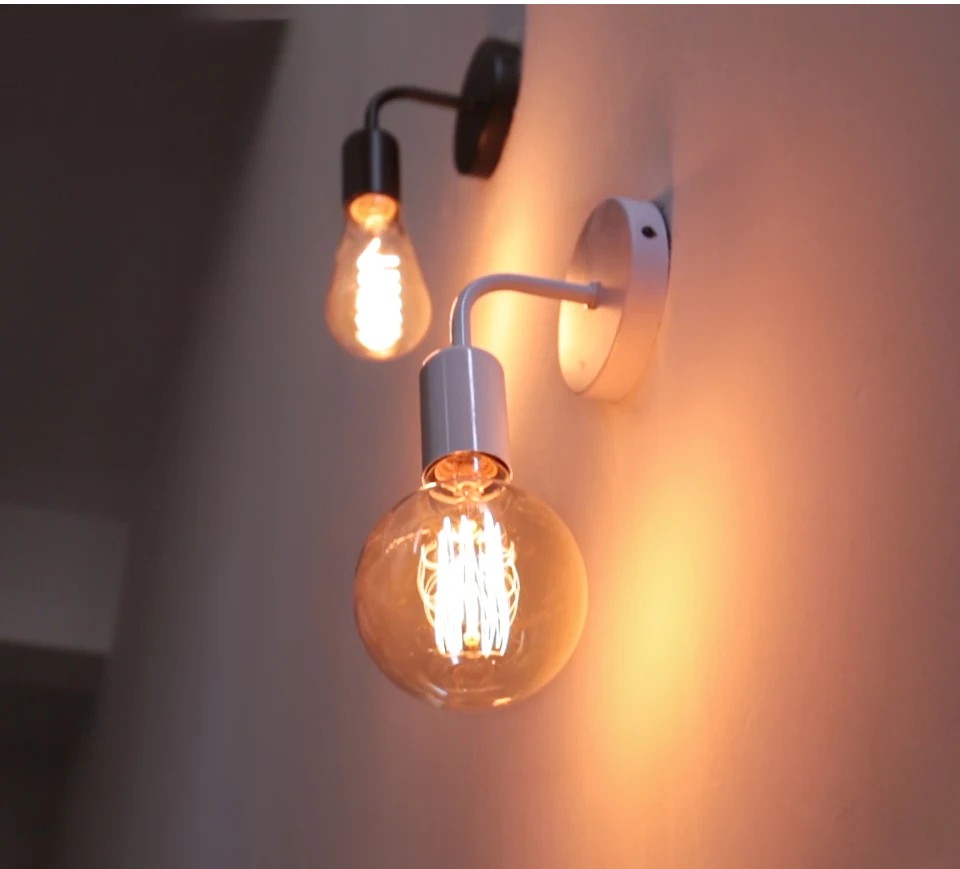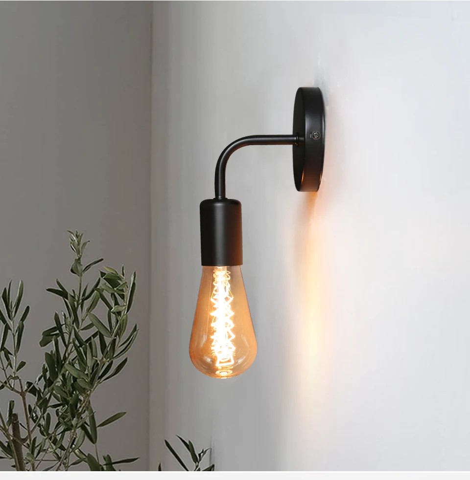 Lámpara de pared moderna con soporte de metal para bombillas E27. Ideal para dormitorios, baños y oficinas. Instalación fácil, adecuada para bombillas E27 con un máximo de 60W. Descripción completa