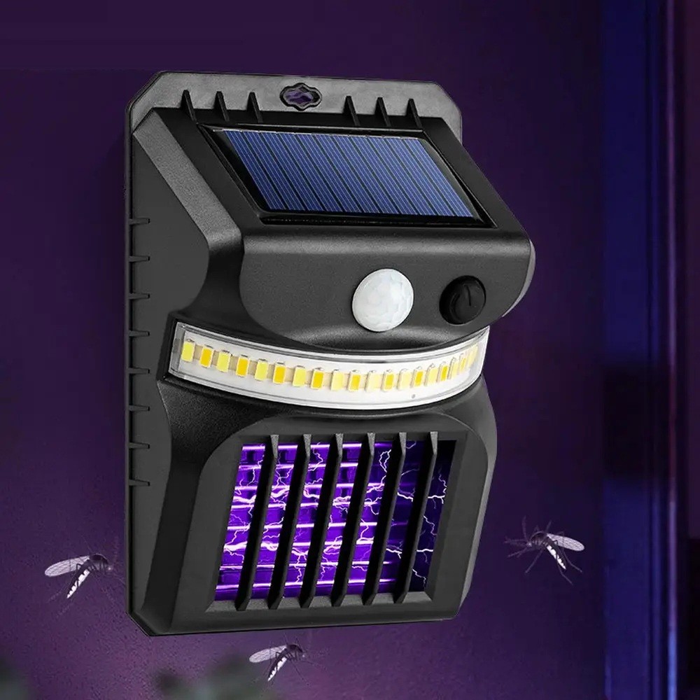 Lámpara LED solar contra mosquitos malla eléctrica UV sensor de movimiento luz de pared impermeable negra para uso exterior