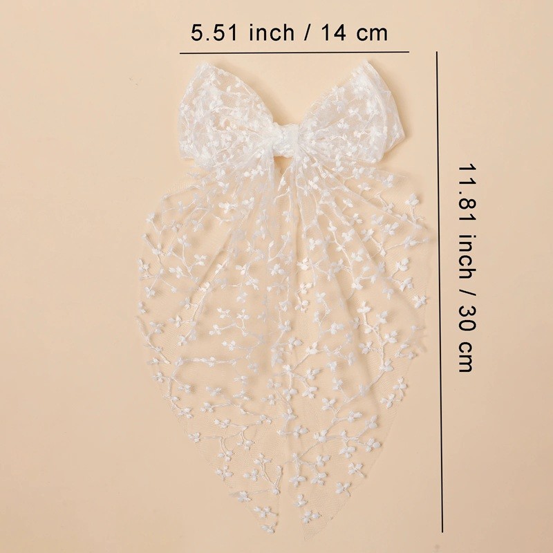 Lazo de encaje para el cabello de mujer 14 × 30 cm Cinta de tul larga Accesorio para el cabello de boda elegante 1 pieza