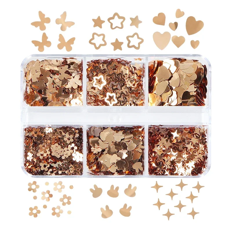 - Contenido del paquete: 3–4 g de lentejuelas en 6 formas diferentes.