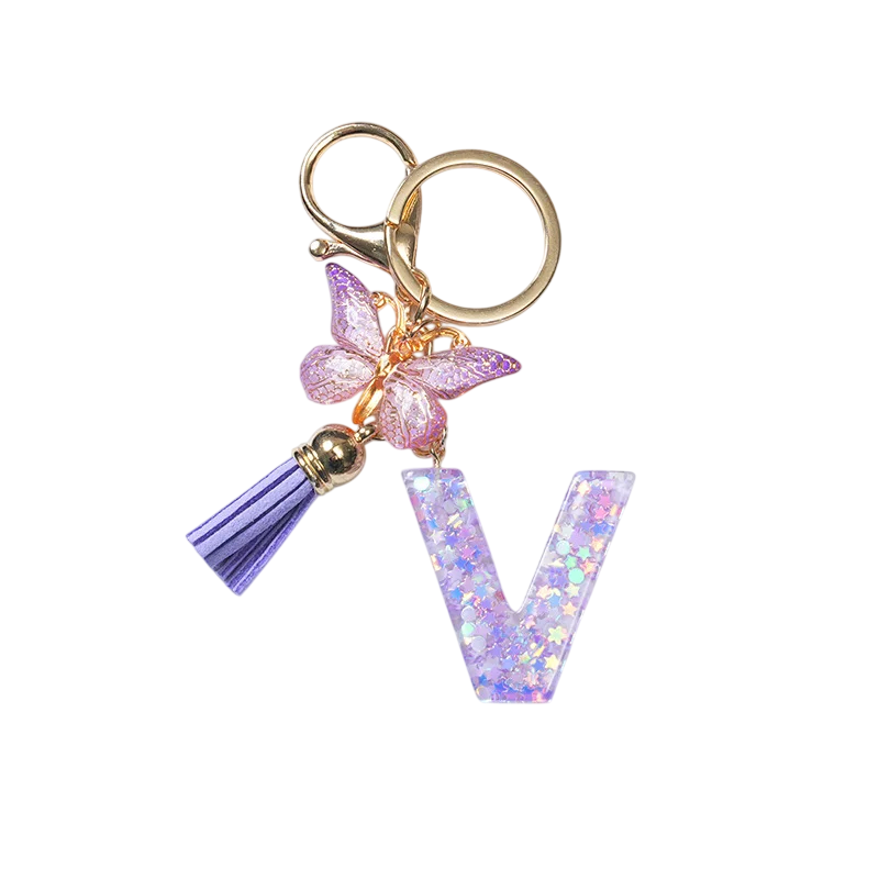 Llavero 4 cm Llavero de resina Iníciales moradas y mariposa Adorno decorativo para bolso mochila Regalo para mujeres