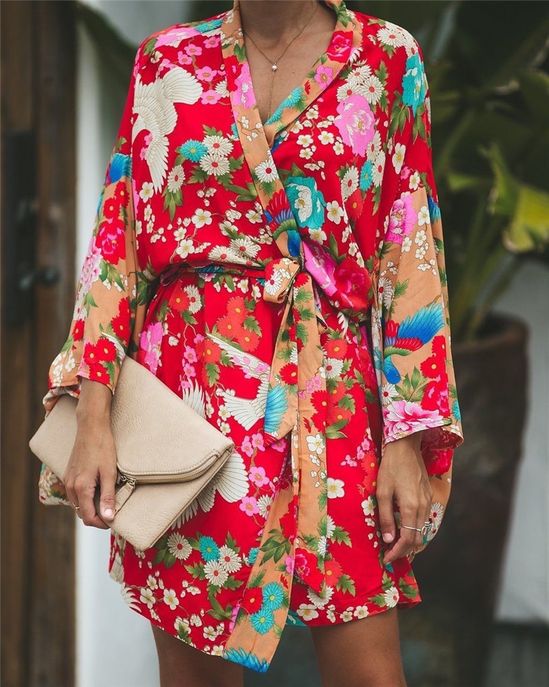 Es largo y tiene un lazo alrededor de la cintura.