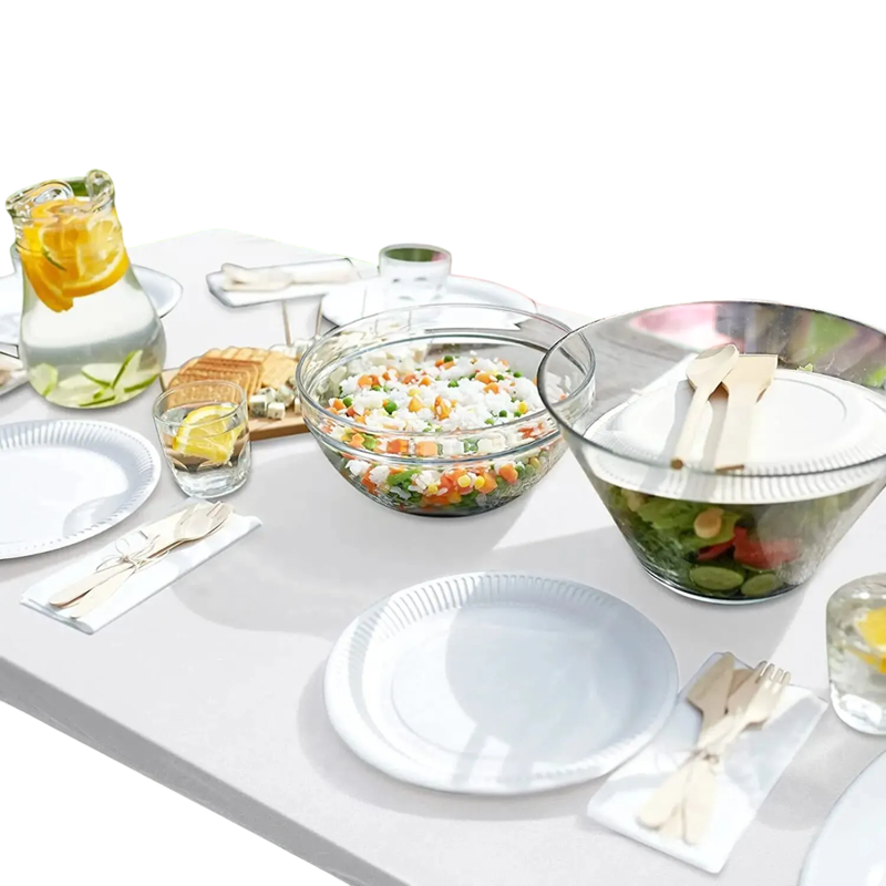 Mantel elástico lavable y resistente que protege la mesa y proporciona un aspecto elegante. Ideal para fiestas, camping y catering. Fácil de plegar y almacenar. Descripción completa
