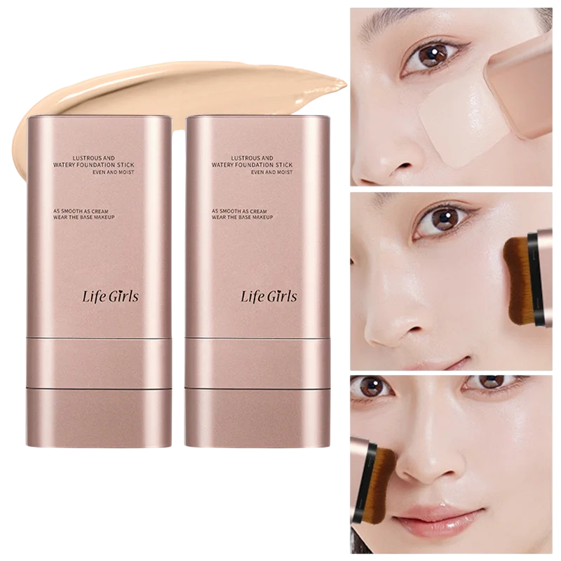 Página de inicio Página de inicio Salud y belleza Rostro Maquillaje Maquillaje hidratante ligero en barra con brocha Resistente al agua, maquillaje en barra de larga duración para un aspecto natural y brillante de la piel