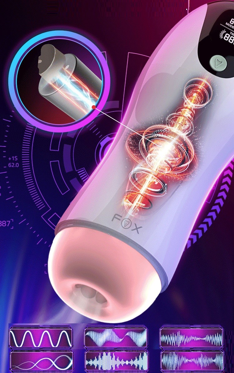 En la pantalla LED integrada se puede ver el modo actual de vibración y la intensidad de succión, el estado de carga de la batería y un temporizador. El juguete ofrece 8 modos diferentes de vibración y succión, que se pueden combinar para diferentes niveles de estimulación. El masturbador reacciona a estímulos acústicos, lo que significa que las vibraciones y succión pueden adaptarse al ritmo, volumen y velocidad de la música, al volumen de los gemidos de la pareja (al usarlo en pareja), o a los ruidos del entorno. Esta función permite una experiencia completamente nueva, donde el juguete „escucha“ y ajusta su rendimiento en tiempo real.