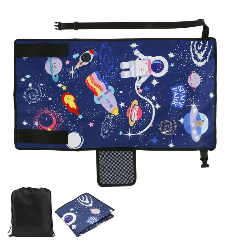 Esta mesa de viaje para niños con manta ofrece comodidad y diversión durante los largos viajes en avión o coche. Gracias a sus dimensiones compactas de 79 x 44 cm, se puede fijar fácilmente a la mesa plegable en el avión y crear un espacio acogedor para que los niños jueguen, dibujen o descansen. Está fabricada con tela Oxford resistente, que garantiza alta durabilidad y fácil limpieza. El alegre motivo de astronauta encantará a cualquier niño y hará más placentero el viaje.