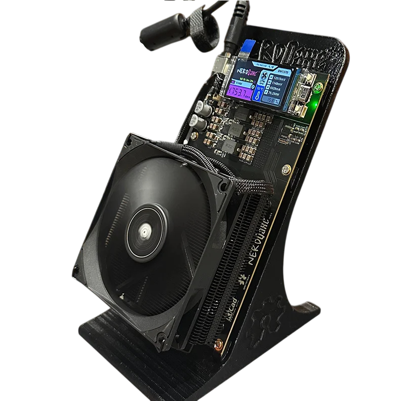 El miner de Bitcoin Bitaxe NerdQaxe++ permite la minería eficiente de bitcoins gracias a 4 potentes chips, alto rendimiento y bajo consumo de energía. Conexión a través de la red WiFi doméstica, posibilidad de personalización gracias al software abierto. Descripción completa