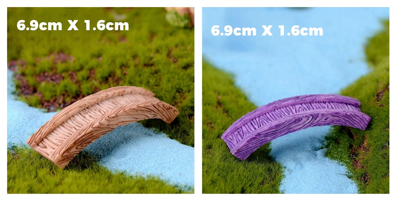 El mini puente es adecuado para modelistas, coleccionistas y creadores de micro mundos creativos. Puede ser colocado sobre un arroyo, entre piedras o como parte de una escena de jardín. Se combina bien con figuras, árboles, estanques, senderos u otros accesorios de modelismo.