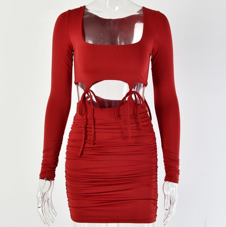 Mini vestido de mujer. Top plisado y falda con cordones.