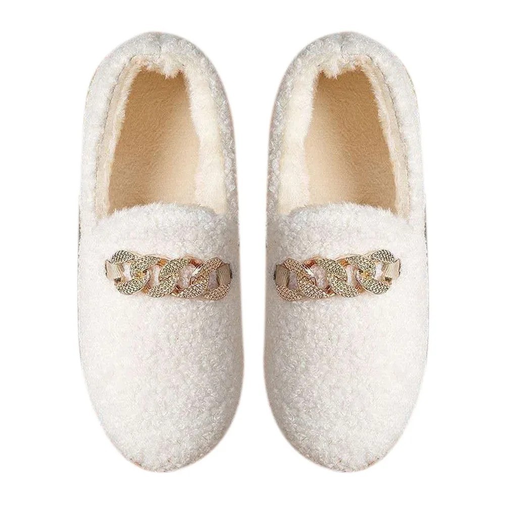 Elegantes zapatillas de mujer en forma de mocasines con interior de felpa y suela antideslizante. Suave, cálido y perfecto para los días de invierno en casa. Descripción completa