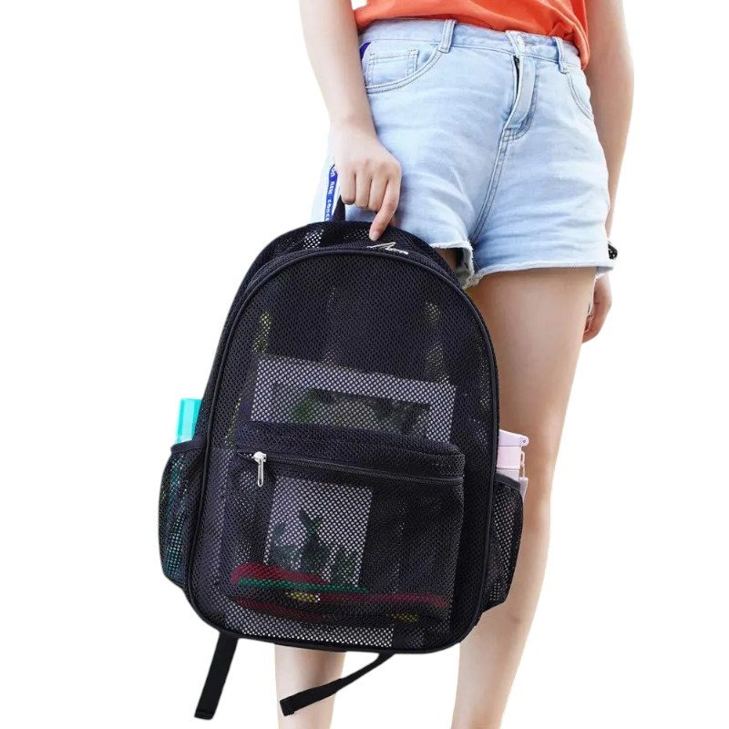 Página de inicio Página de inicio Bolsos, Mochilas y Carteras Bolsos, mochilas y carteras para mujeres Mochilas de mujer Mochila de red para mujer 41 x 26,5 x 14 cm Mochila ligera y transpirable con cierre de cremallera y bolsillos laterales Correas ajustables