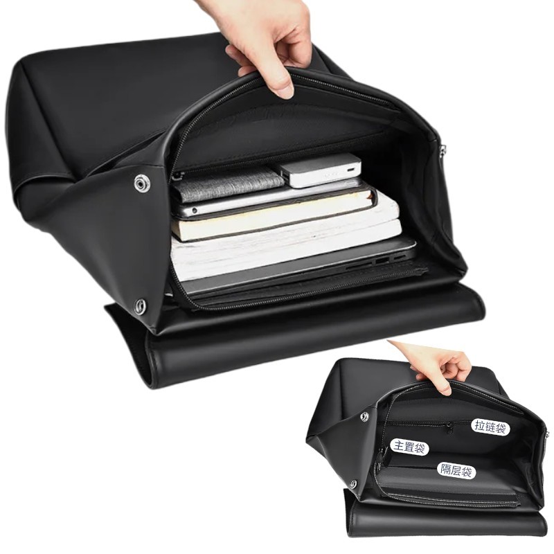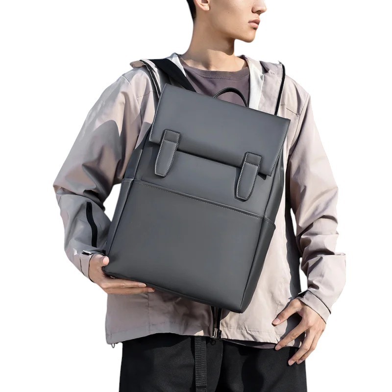 La mochila rectangular para hombre está diseñada para el uso diario en la ciudad, para el trabajo, la escuela o para recados cotidianos. Gracias a sus dimensiones 31 x 13 x 42 cm, ofrece suficiente espacio para pertenencias personales, documentos y electrónica pequeña, sin parecer voluminosa. La combinación de poliéster y cuero sintético le da a la mochila un aspecto moderno y al mismo tiempo mantiene su ligereza. La solapa característica con hebillas resalta el estilo urbano y añade estructura visual a la mochila. El diseño general está pensado para que la mochila luzca elegante, pero a la vez sea adecuada para la carga diaria.