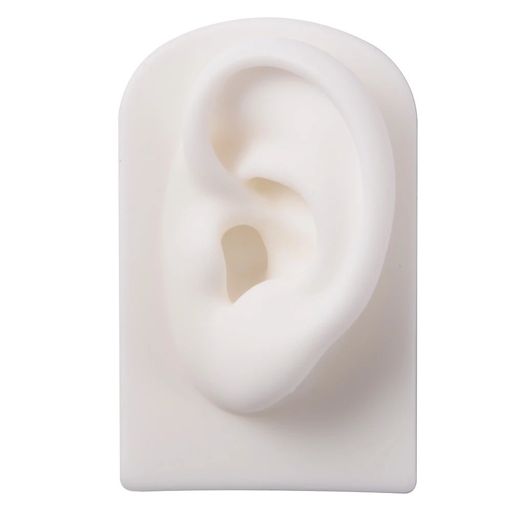 Modelo de silicona de la oreja izquierda 7,8 × 4,9 × 4 cm Modelo de entrenamiento blando para la práctica de piercing y tatuaje