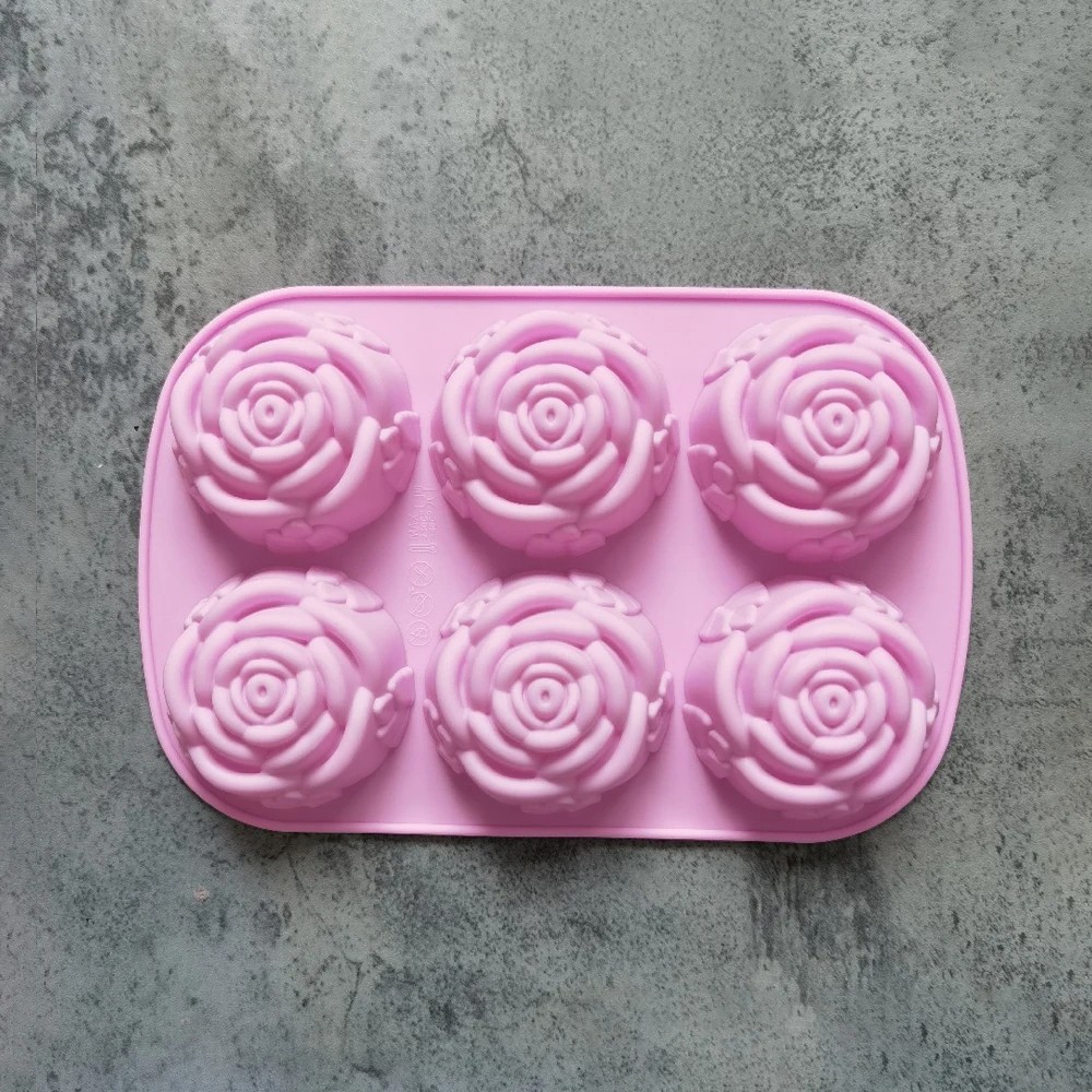 Molde de silicona rosa con 6 compartimentos en forma de rosa de 7,2 cm de diámetro para hacer jabón, velas o decoraciones de yeso. Descripción completa