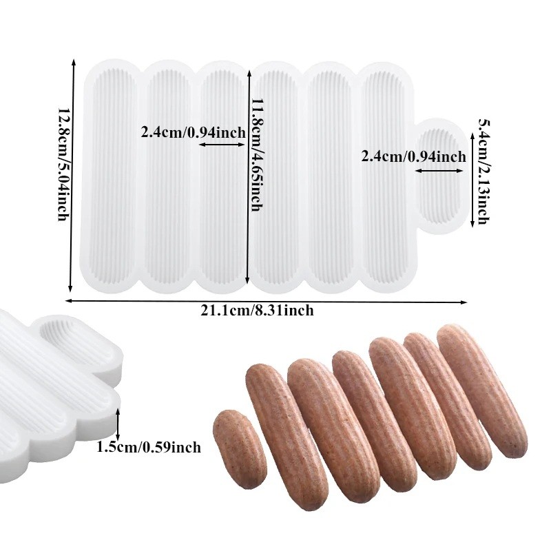 El tamaño del molde de 13 × 21 cm permite una manipulación cómoda y un fácil almacenamiento, mientras que sus siete moldes distribuidos uniformemente facilitan la preparación de piezas homogéneas. La superficie estriada le da al postre resultante un aspecto decorativo que no necesita más ajustes. El resultado puede ser tanto galletas dulces como barritas saladas, snacks de proteínas o eclairs caseros de cualquier masa. Gracias a su alta resistencia a temperaturas, puedes usar el molde sin preocupaciones en el horno de casa.