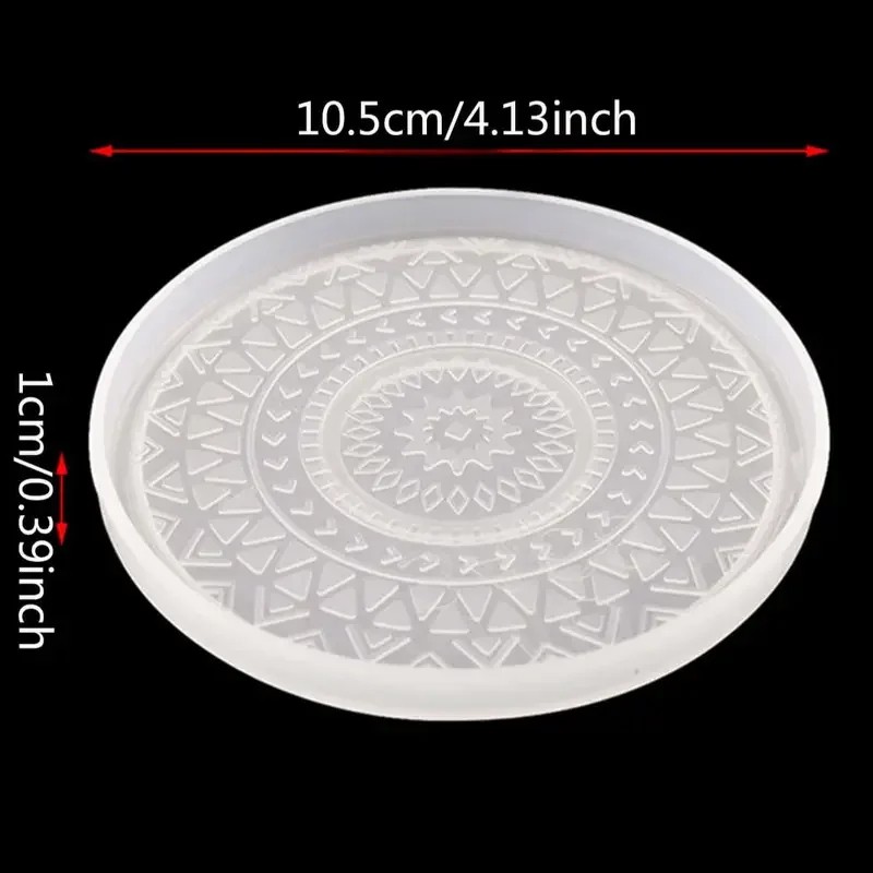 Molde de silicona para resina 10,5 x 1 cm Forma redonda con patrón de mandala para vertidos, posavasos, decoración, manualidades