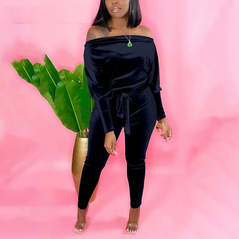 Mono de terciopelo para mujer con hombros descubiertos