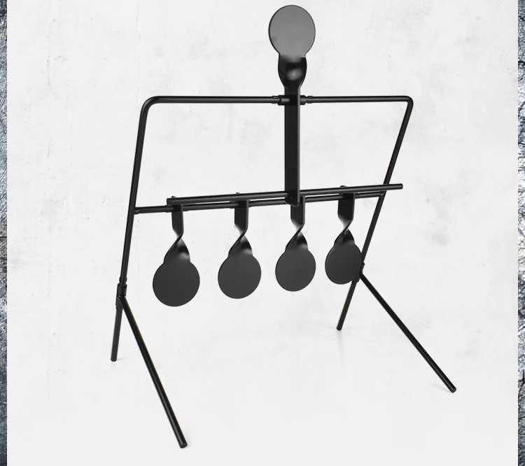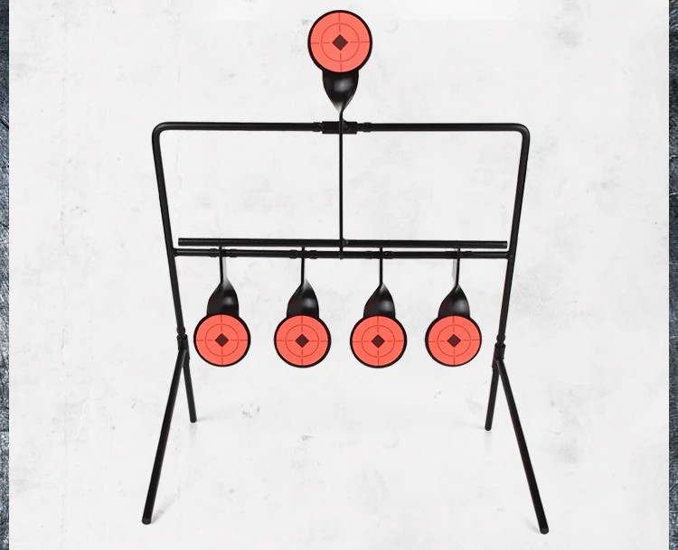 Objetivo de tiro metálico giratorio con cinco dianas permite un entrenamiento continuo sin interrupciones. La restauración automática de la posición después del impacto aumenta la efectividad del tiro. Descripción completa