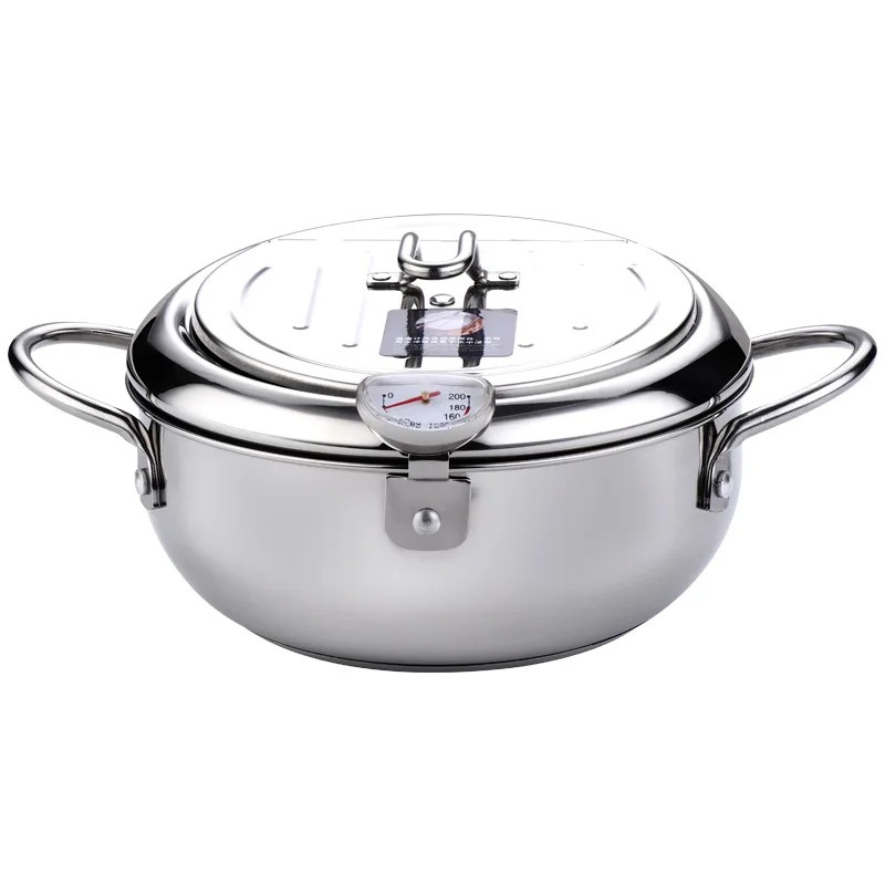 Olla de freír japonesa con termómetro y rejilla de drenaje 20 cm 2.2 l acero inoxidable plateado para freír en casa