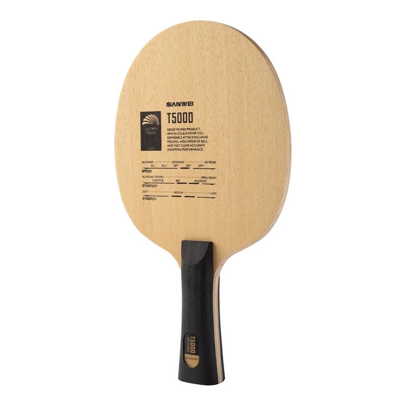 Raqueta de ping pong de alta calidad con mango largo, combinación de madera y carbono, diseñada para un control preciso y golpes de ataque potentes. Descripción completa