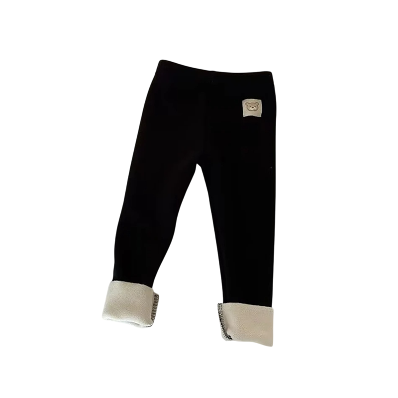 Pantalones de invierno cálidos para niños con forro de peluche, cintura elástica cómoda y un lindo osito. Ideales para salir y para la guardería durante los días fríos. Descripción completa