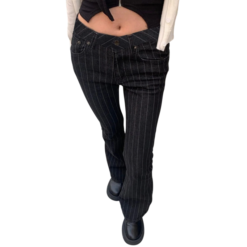 Página de inicio Página de inicio Ropa y accesorios Ropa de mujer Vaqueros de mujer Pantalones de mujer negros con rayas con bolsillos de algodón poliéster spandex elásticos corte cómodo pantalones slim modernos para uso diario