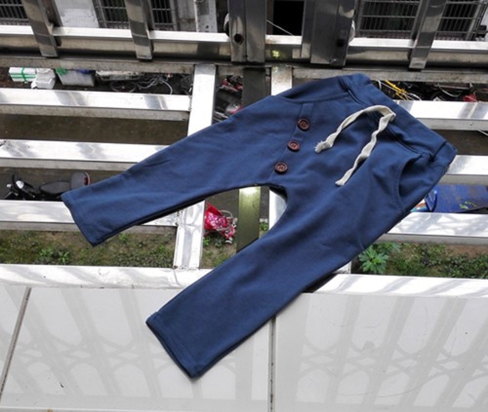 Precioso pantalón deportivo para niño con 2 bolsillos y botones en el bolsillo derecho.