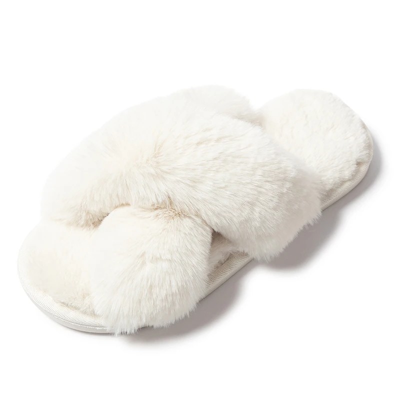 • Contenido del paquete: 1 par de pantuflas peludas para mujer con diseño cruzado