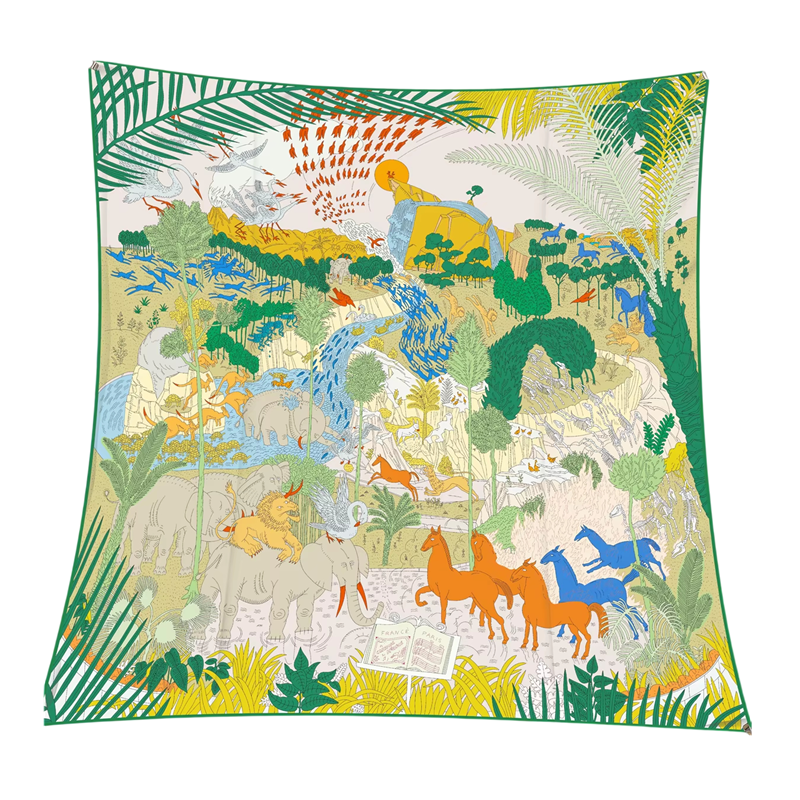 Este pañuelo cuadrado aporta frescura, color y un diseño ingenioso inspirado en la naturaleza a la moda cotidiana. El motivo de selva animal juguetona añade energía, originalidad y un carácter ligeramente audaz al atuendo. Combina la tendencia de moda con un patrón destacado que puede iluminar incluso las combinaciones de ropa más simples. Gracias a su diseño versátil, puedes usarlo como pañuelo para la cabeza, el cuello y el cuerpo, creando un estilo diferente cada vez. Es la elección ideal para las mujeres que desean añadir singularidad y un toque fresco a su apariencia.