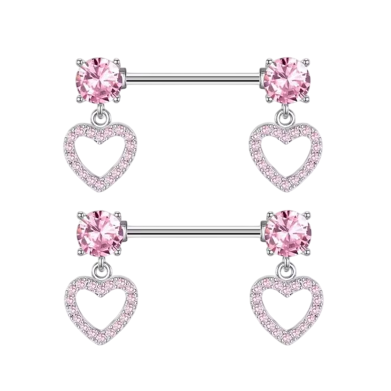 Par de joyas románticas para pezones con corazón tamaño 1,6 mm Piercing corporal brillante para mujeres y chicas Diseño femenino delicado
