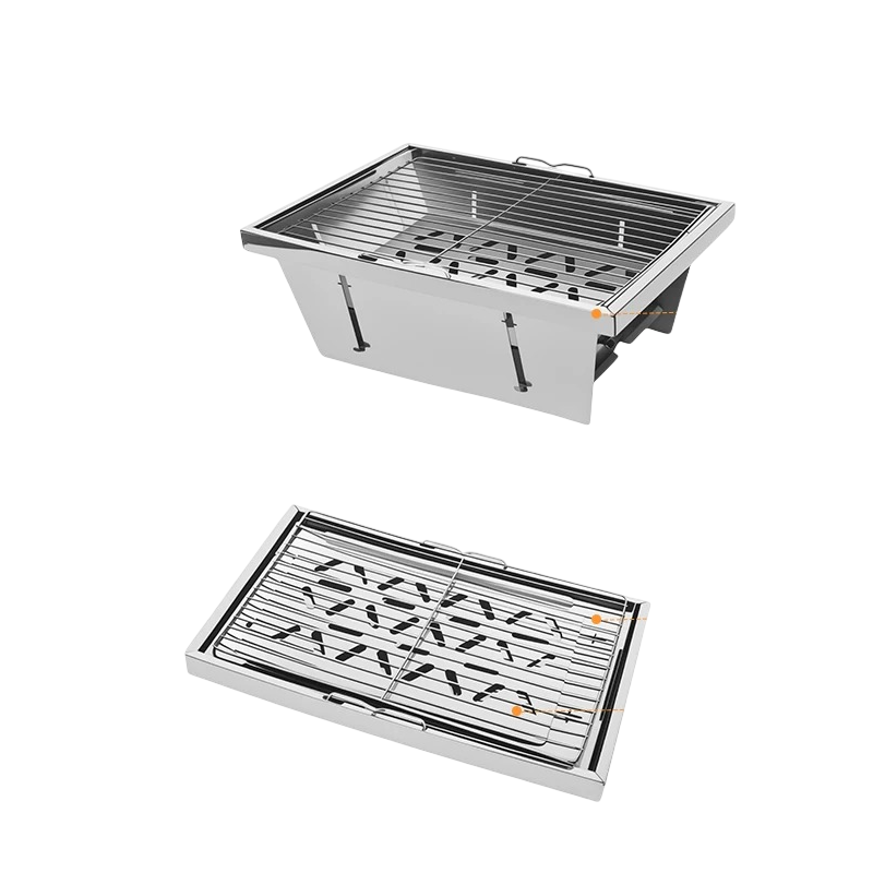 Práctica parrilla portátil de carbón de acero inoxidable adecuada para jardín, camping o picnic. Diseño compacto para fácil transporte. Descripción completa