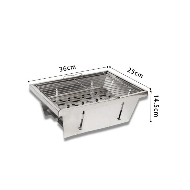 Parrilla portátil de carbón 36 x 25 x 14,5 cm Acero inoxidable Parrilla BBQ de camping Parrilla de mesa para jardín picnic viaje Plateado