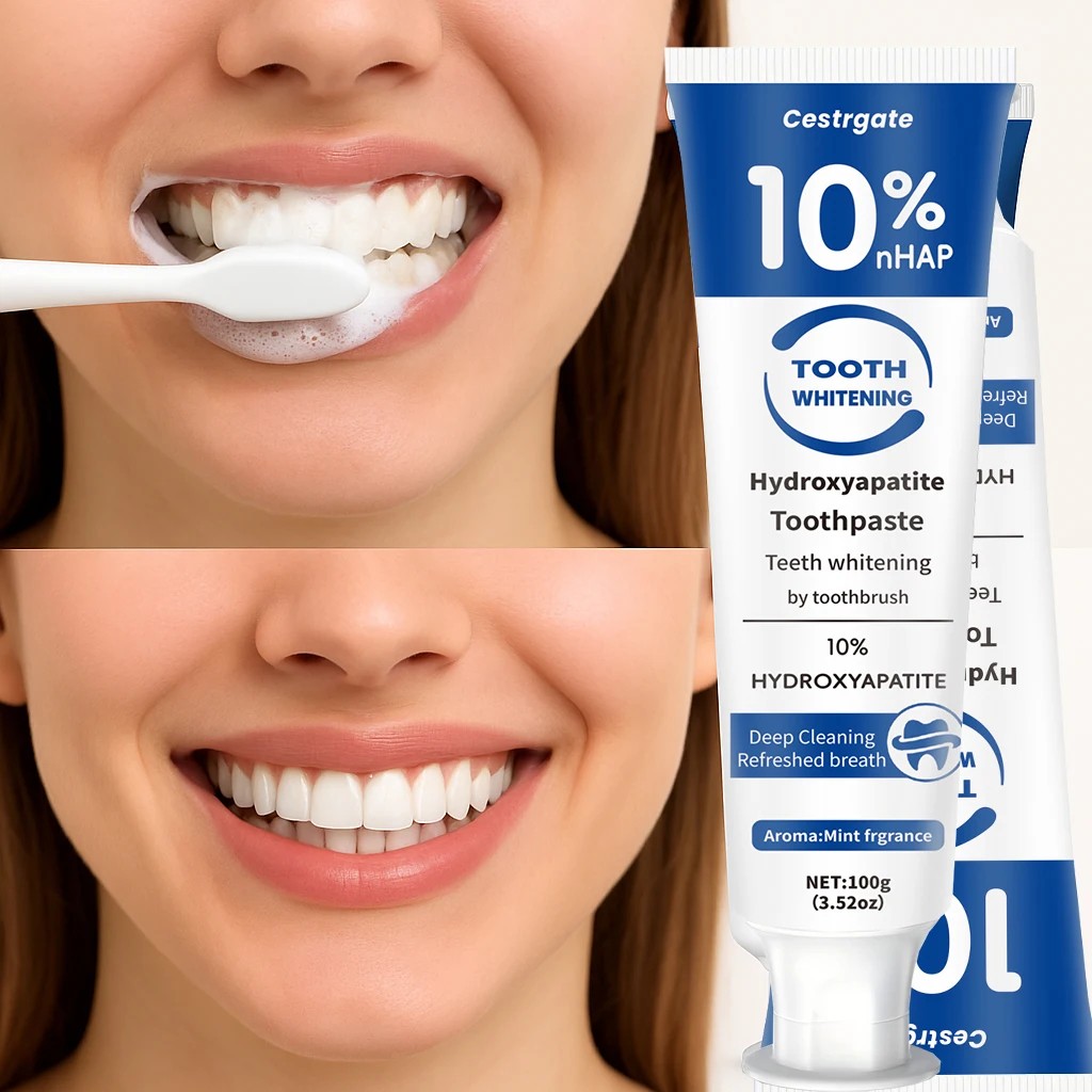 Pasta de dientes con hidroxiapatito 10 % 100 g para blanquear y limpiar los dientes sabor a menta tubo azul-blanco para la higiene bucal diaria