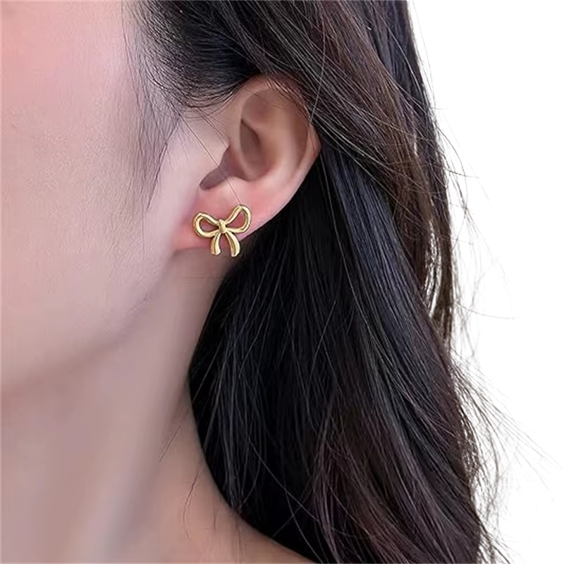 Estos pendientes discretos con diseño de lazo representan la combinación perfecta de elegancia y estilo moderno. Su diseño sutil pero llamativo complementa perfectamente tanto un atuendo diario como una vestimenta festiva para una fiesta o evento especial. Fabricados en titanio resistente y acero inoxidable, ofrecen alta resistencia y larga durabilidad incluso con el uso regular. El moderno patrón de lazo tiene un aire romántico y atemporal, lo que los hace adecuados para mujeres y niñas de todas las edades. Este accesorio de moda realza la feminidad y añade un toque de elegancia al atuendo.