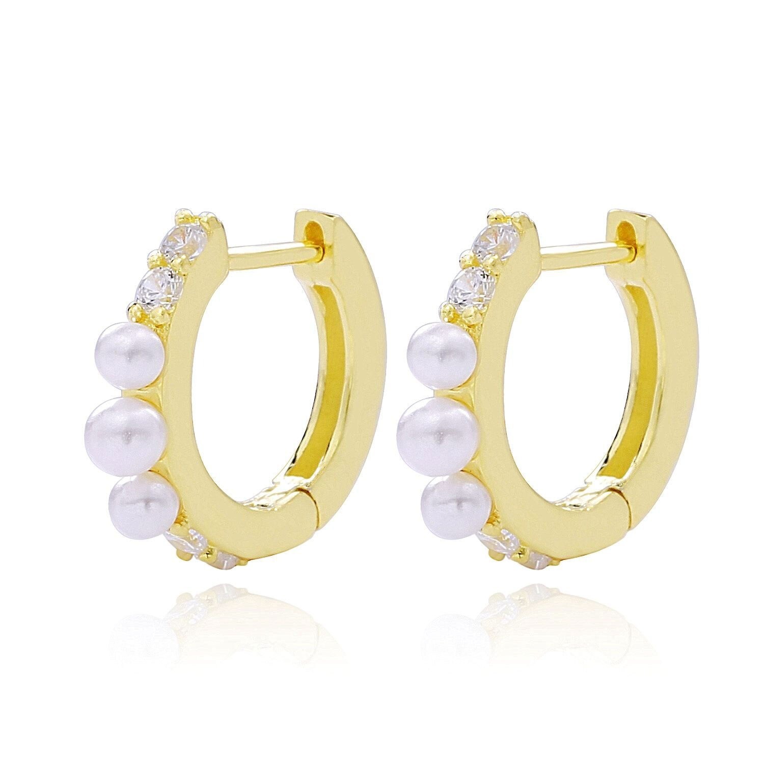 Material: metal de bisutería, circonita, perla de imitación.