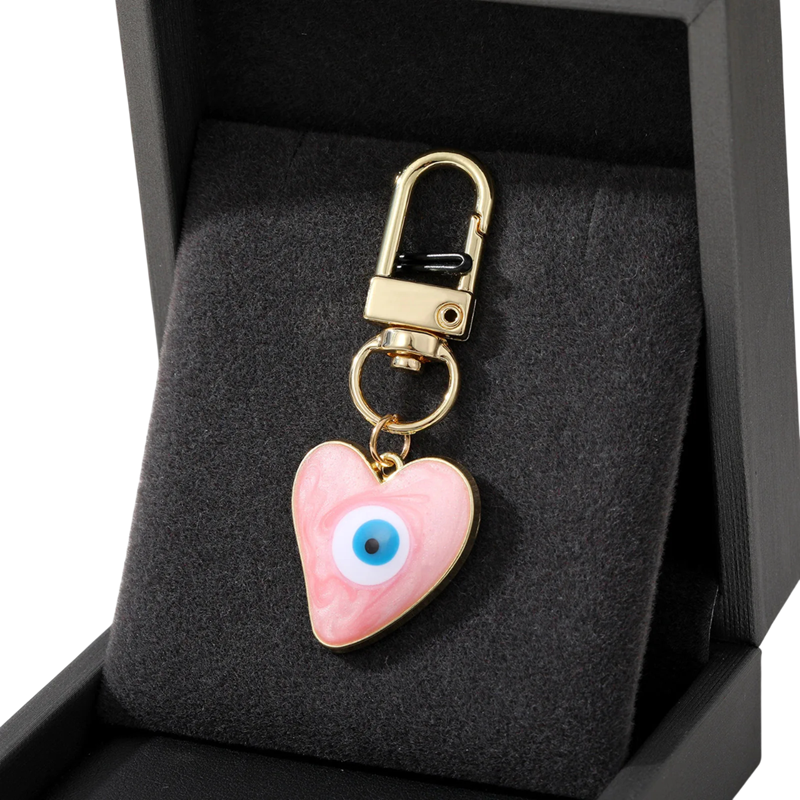 Péndulo para llaves 2,5 x 3 cm Aleación de zinc Ojo Maligno corazón Amuleto protector para llaves bolso mochila decoración