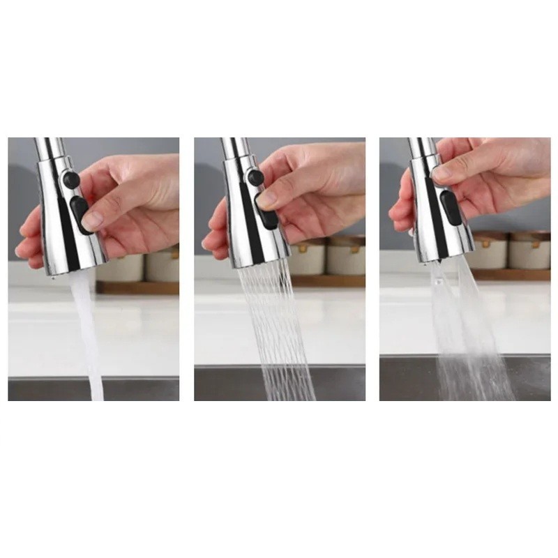 • 3 modos de flujo de agua para agua corriente, ducha fuerte y pulverización