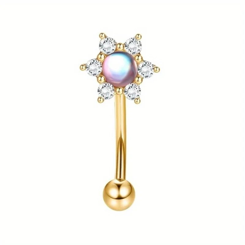 Este piercing con perla en estrella es la elección ideal para quienes prefieren joyas delicadas y elegantes. Gracias a su diseño equilibrado, es adecuado para llevar solo o en combinación con otros pequeños piercings. El detalle de la perla le da a la joya un carácter sofisticado sin resultar ostentoso. El tono dorado se combina fácilmente con otros accesorios de estilo similar. Si buscas un piercing discreto con un suave motivo simbólico, este modelo cumplirá tus expectativas.