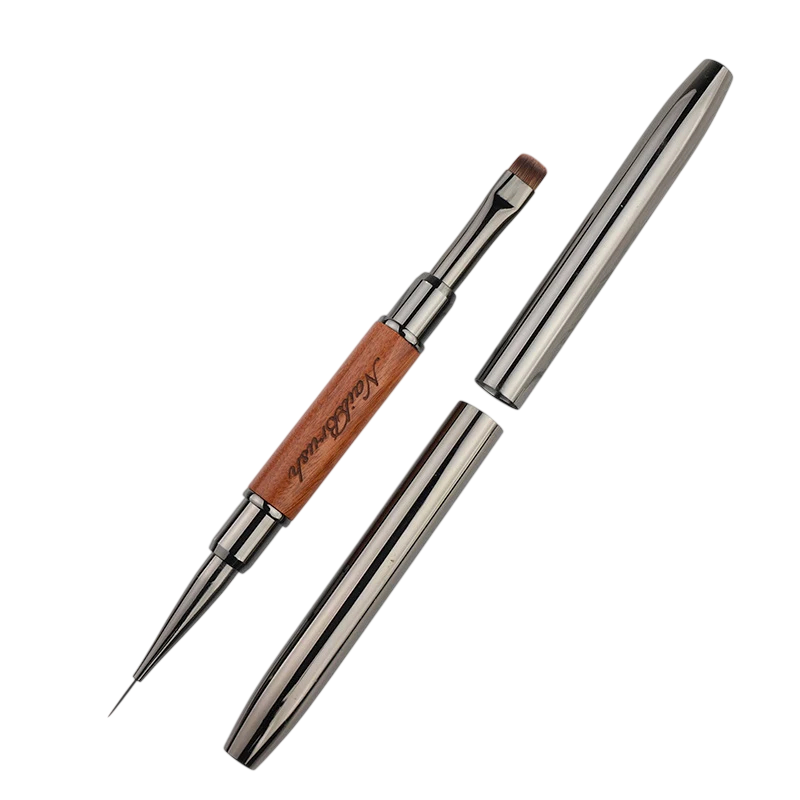 Pincel doble cara para uñas con funda protectora para modelado en acrílico, gel y esmalte, ideal para acabados precisos y pintura de uñas. Descripción completa
