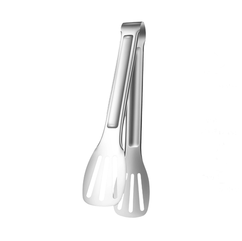 Las pinzas están diseñadas para permitir un agarre firme y seguro de diversos tipos de alimentos. Con ellas puedes voltear sin problemas carne, pescado, verduras u otros platos que se preparan en la parrilla. La sólida construcción de acero inoxidable asegura estabilidad y larga vida útil incluso con un uso frecuente. La forma ergonómica de las pinzas garantiza un agarre cómodo y un control preciso al manipular los alimentos.