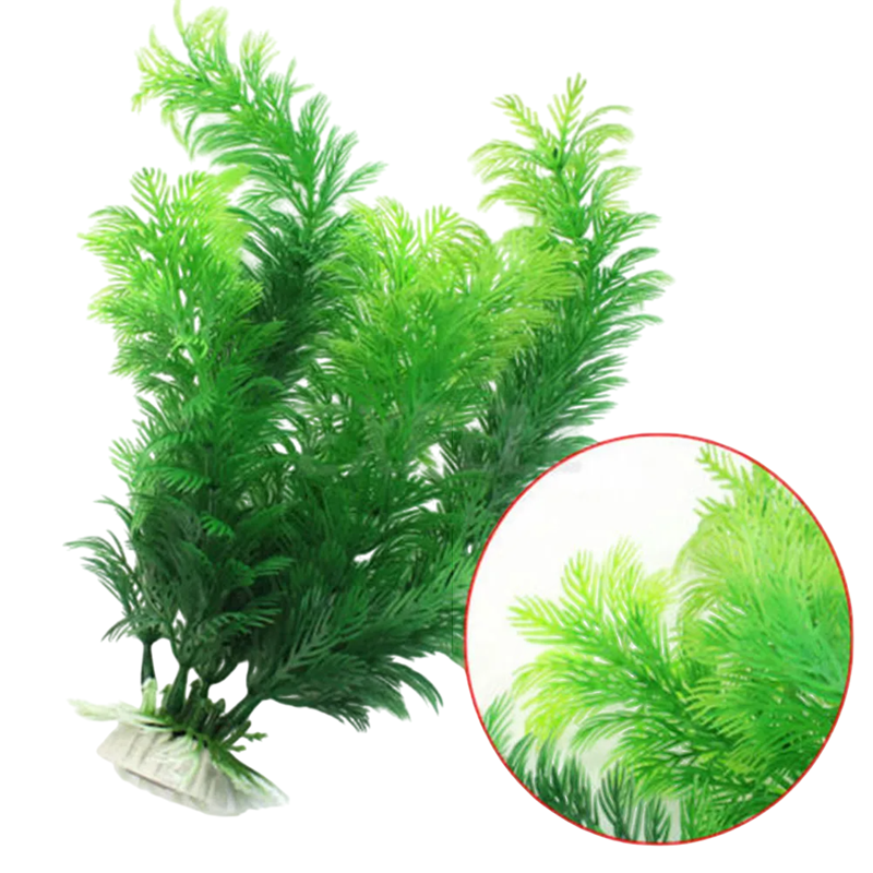 Esta planta acuática artificial de 30 cm de altura está diseñada para imitar lo más fielmente posible la apariencia de la vegetación acuática viva. Está fabricada de plástico no tóxico, que no afecta la calidad del agua y es seguro incluso para peces sensibles y otros organismos. Gracias a su apariencia natural, se integra fácilmente en cualquier acuario y crea un paisaje armonioso. La planta no se pudre ni se descompone, lo que garantiza una larga vida útil y un mantenimiento mínimo. Ideal para aquellos que desean añadir color, textura y espacio para refugio en el acuario sin necesidad de cuidar plantas vivas.