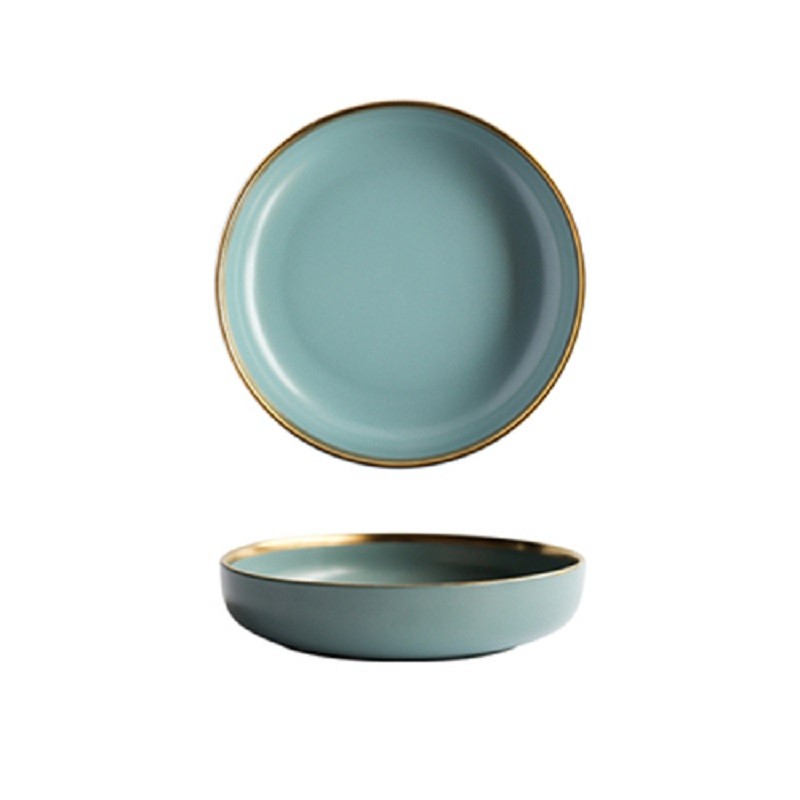 Plato en colores pastel con linea dorada.