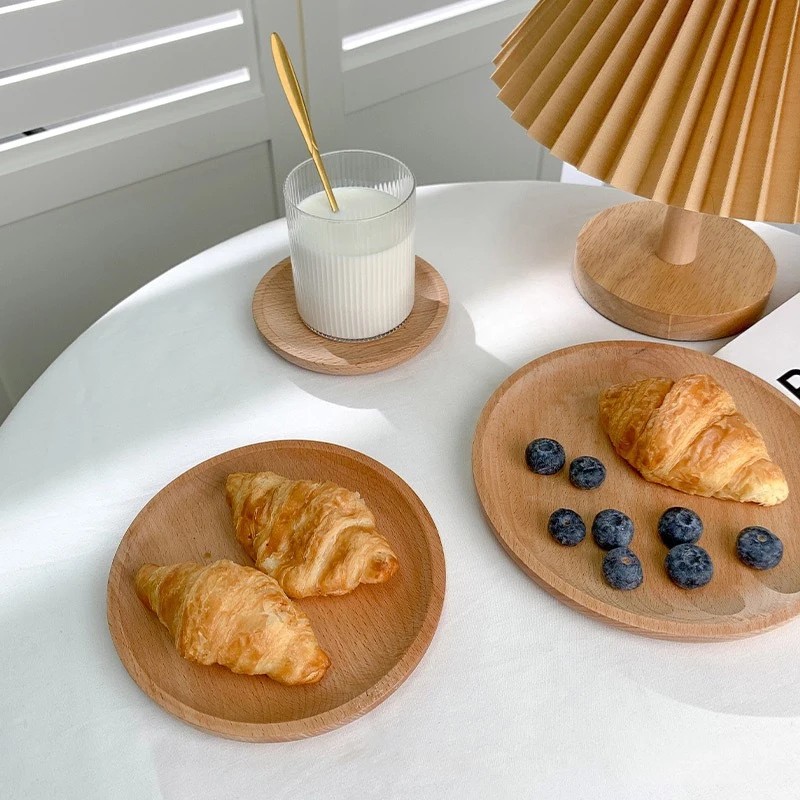 Plato de postre redondo de madera maciza de 10 cm, bandeja de madera natural para servir postres y aperitivos