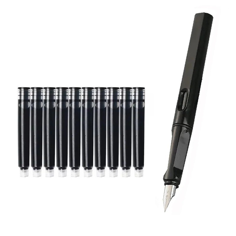 Pluma negra recargable con cartucho de tinta intercambiable 13,8 cm 0,38 mm pluma caligráfica para escuela oficina escritura diaria