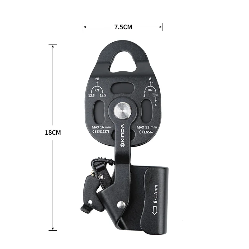 Polea de escalada 7,5 x 18 cm de aluminio aeronáutico 7075 Polea resistente para cuerda de 8–12 mm Escalada Equipamiento deportivo al aire libre