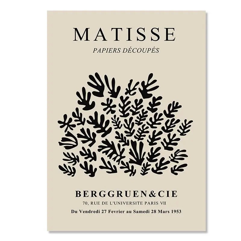 Póster de diseño para pared 50 x 70 cm estilo Henri Matisse Papiers Découpés Siluetas vegetales negras Imagen moderna impresión en lienzo sin marco