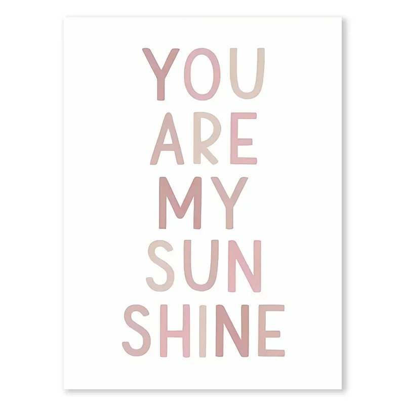 Póster de pared 21 x 30 cm You are my sunshine Texto rosa Lienzo sin marco Decoración para habitación de niña y niño