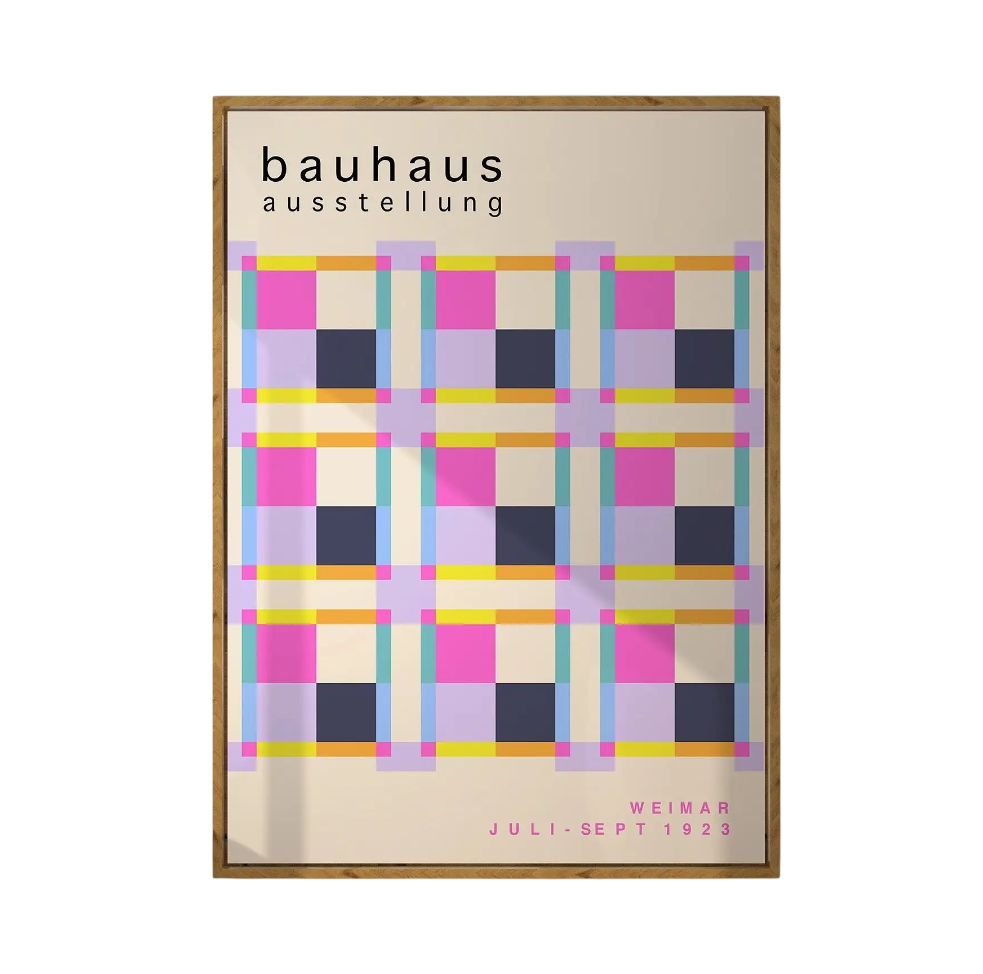 Póster de pared moderno inspirado en la icónica escuela Bauhaus que presenta una armoniosa combinación de colores, geometría y estilo minimalista. Gracias a sus formas distintivas y a la composición de cubos de colores, se convertirá en un elemento inconfundible en cualquier interior. El póster es ideal para los amantes del diseño moderno que desean aportar un carácter único al espacio. La impresión de alta calidad en lienzo crea un elegante efecto visual y parece una verdadera obra de arte. Se integra perfectamente en salas de estar, oficinas y espacios de trabajo de estilo moderno.