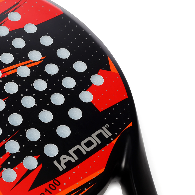 Esta raqueta de pádel representa una excelente opción para jugadores que buscan una combinación de calidad, durabilidad y comodidad durante el juego. Gracias a la superficie de fibras de carbono, la raqueta ofrece alta resistencia, mientras que el núcleo de espuma de memoria EVA se encarga de la óptima amortiguación de vibraciones y golpes más cómodos. El mango diseñado ergonómicamente con una longitud de 12 cm y un perímetro de 10 cm garantiza un agarre firme y seguro incluso durante partidos largos. Gracias a sus dimensiones, la raqueta es adecuada para una amplia gama de jugadores que buscan un equipo versátil para el juego recreativo y deportivo. Además, el moderno diseño negro-rojo añade estilo y un aspecto atractivo en cualquier cancha.