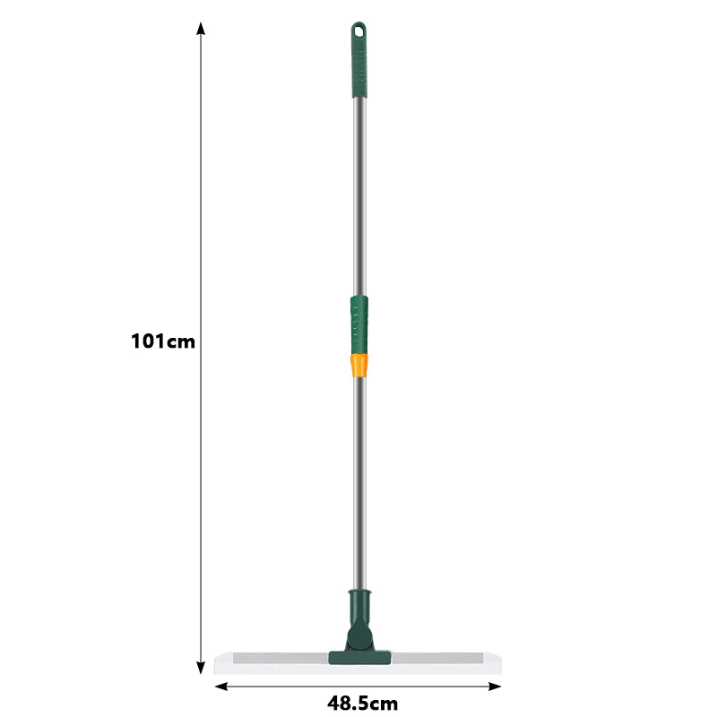 Página de inicio Página de inicio Casa y enseres domésticos Utensilios de limpieza Mopas Rasqueta de suelo con longitud ajustable 101 x 48,5 cm cabeza giratoria 180° Rasqueta de suelo con mango telescópico para la limpieza de baños y cocinas